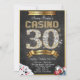 Quadro Dourado do diamante do póquer da noite do casino convite metálico de jogo do aniversário de Bling do 30o