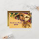 A máscara Dourado do carnaval com ouro, miçanga e fita verde e roxa e texto imprimiu no roxo. A parte traseira é ouro com texto roxo.
