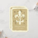 Estes convites caracterizam um símbolo elegante branco para fora lavado da flor de lis coberto em confetes dourados em um ouro do champanhe e fora do esquema de cores branco. Aperfeiçoe para seu evento do casamento de Nova Orleães ou o outro recolhimento!