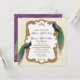 Este convite elegante e sofisticado tem uma apelação rica e elegante do vintage. Criado com uma seleção dos elementos da arte do vintage que foram compilados em um design novo fresco por Audrey Jeanne Roberts. Os redemoinhos da caligrafia de Spencerian dão uma qualidade bonita e intemporal a este fundo delicado. Um par de pavões régios senta lado a lado um quadro dourado cinzelado dourado. A cor do fundo é customizável completo para combinar suas cores do casamento. Eu usei duas cores neste convite, mas seus dianteiro e reverso poderiam igualmente ser a mesma cor - é sua escolha! Cada produto mostrado pode ser criado em toda a cor que você desejar. SELEÇÃO DE PAPEL: Mostrado aqui com o gelo de Champagne metálico. Este papel é MAGNÍFICO, ele tem um revestimento macio, cremoso da pérola que dê a elegância incrível a sua apresentação. Isto igualmente olharia excelente com o feltro, linho, congela papéis metálicos ou outros do prêmio assim como os impressões de papel padrão de Zazzle sobre. VOCÊ PÔDE IGUALMENTE APRECIAR: CONVITES DO CASAMENTO: