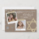 Bat Mitzvah é um convite para o livro, com pedras, ouro e prata. Fotos quadradas bonitas com Star of David trabalho de arte na textura falsa de madeira é um belo visual de vintage para a sua celebração de aniversário. As legendas escritas em fotos podem ser mudadas para qualquer belo texto que você escolher. Carregue facilmente suas fotos nos quadros de fotos.
