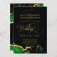 Uma tinta sofisticada lavou o convite de casamento com deluxe emerald green, preto e dourado. Um convite de casamento sofisticado de abstrato de arte de joias. Este elegante convite para o casamento apresenta uma lavagem artística de tintas verdes, pretas e douradas. Adicione facilmente seus detalhes de casamento ao modelo usando a ferramenta de personalização do Zazzle. Entre em contato conosco se precisar de assistência via Zazzle Chat. Eethal Emerald Green Dourado Convite para Casamento.