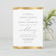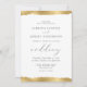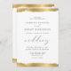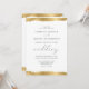 Este elegante convite de casamento apresenta uma folha de ouro falso, design de borda rasgada nas bordas superior e inferior. A palavra "casamento" aparece em escrita caligráfica. Personalize o texto da cinza de carvão com os nomes da noiva e do noivo e os detalhes do casamento. O design dourado é repetido no reverso.
