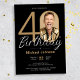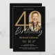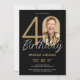 Convite de Foto Simples Elegante Preto e aniversário de 40 anos Dourado. Celebre seu aniversário de marco no estilo moderno e elegante com nosso design de tema "Chic Minimalista", onde a simplicidade da elegância Minimalista encontra o fascínio da personalização da Foto Personalizada. Este design simples e chic permite que a sua fotografia personalizada tire palco central, fazer a sua celebração exclusivamente a sua. Crie um ambiente moderno que destaque a importância desse marco enquanto mantém uma margem na moda sem esforço. Com a "Chic Minimalista", o seu tema de festa de aniversário incorpora uma fusão perfeita da sofisticação e do sentimento pessoais contemporâneos, estabelecendo o palco para uma celebração inesquecível.