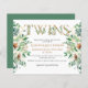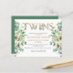 Cartão de Convite Dourado para Alfabeto Eucalyptus, Chá de fraldas Twin Orçamento. Celebre a chegada do seu bebê precioso com este elegante, moderno e bonito "Convite ao Chá de fraldas" horizontal, com uma folha de ouro, como o alfabeto "Gêmeos", decorado com folhagem de algodão mole branco e folhagem verde de folhas de eucalipto em cada lado. O plano de fundo apresenta cor verde de sábio. Todos os textos estão pré-organizados para que você personalize fácil e rapidamente com os detalhes do seu chá de fraldas. (Observe que ENVELOPES NÃO ESTÁ incluído. As dimensões desta placa são de 4,5" x 5,6" e ajustado bem em um envelope A6 de 4,75" x 6,5", se você tiver. Ou você pode selecionar uma opção de envelope)