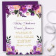 Convite para Casamento Dourado e Floral Roxo-Violeta Ultra Violet - Parte Traseira Roxa