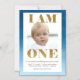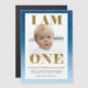 A letra de água dourada moderna "I AM ONE" destaca a foto do convite MAGNÉTICO do seu bebê primeiro aniversario. Disponível em outras combinações de cores, você pode facilmente adicionar detalhes de sua parte a este primeiro modelo de convite de aniversário. A borda deste convite para aniversários de criança está em uma lavagem de aquarela azul.