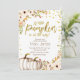 Convite de abóbora branca e dourada com fundo floral e confete dourado. Perfeito para o seu convite de festas chá de fraldas. Elegantemente rústico para o outono.