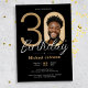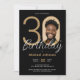 Convite de Foto Simples Elegante Preto e aniversário de 30 anos Dourado. Celebre seu aniversário de marco no estilo moderno e elegante com nosso design de tema "Chic Minimalista", onde a simplicidade da elegância Minimalista encontra o fascínio da personalização da Foto Personalizada. Este design simples e chic permite que a sua fotografia personalizada tire palco central, fazer a sua celebração exclusivamente a sua. Crie um ambiente moderno que destaque a importância desse marco enquanto mantém uma margem na moda sem esforço. Com a "Chic Minimalista", o seu tema de festa de aniversário incorpora uma fusão perfeita da sofisticação e do sentimento pessoais contemporâneos, estabelecendo o palco para uma celebração inesquecível.