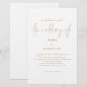 Um tamanho maior de 5,5" x 8,5" a um preço orçamentário. Dourado Convite para Casamento Branco. Uma tipografia na moda é em ouro para o título principal "Casamento de complementar o resto do texto que você pode facilmente personalizar".