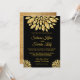 Incêndio aos seus convidados com este convite de casamento de ouro com uma elegante flor de ouro contra fundo preto. Basta adicionar os detalhes do seu evento neste modelo fácil de usar para torná-lo um convite de tipo único. Sacudir a placa para revelar uma textura falsa dourada na parte traseira da placa. Este convite é totalmente personalizável. Todos os textos são editáveis e a cor de fundo pode ser facilmente alterada para quais melhores ajustados você pode fazer.