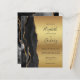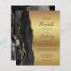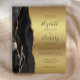A borda esquerda deste elegante convite de casamento moderno apresenta uma coloração aquosa preta, borda agitada, aparada com falso brilho dourado. O texto personalizável combina letra preta de ardósia, fonte em copperplate e itálico em fundo de folha de papel azul. O verso apresenta um design de agate preto e dourado correspondente.