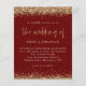 Um valor para o alternativo do ORÇAMENTO em tamanho menor de 4,5 x 5,6" de semirbrilho de 110 lbs, que é de espessura semelhante a um cartão postal (no entanto, não é adequado para uso como cartão postal). POR FAVOR, OBSERVE QUE HÁ UM convite por folha. Burgundy com Dourado Convite para Casamento Glitter. Uma tipografia elegante está em ouro para o título principal "O Casamento de complementar o resto do texto que você pode personalizar facilmente, com bordas de confete falho dourado no topo e no fundo e também no verso.