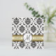 Vintage Casamento tema damasco preto e branco com cor de destaque Dourada que você pode personalizar. Convite Design por Elke Clarke ©2010, 2012. Gráficos licenciados. Uma maneira elegante de definir o tema do seu casamento, enviando esses convites de casamento luxuosos. Personalize com seus detalhes de casamento e informações pessoais para tornar esses sofisticados convites de casamento únicos e perfeitos para o seu casamento.