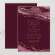 Estes convites de casamento deram o tom para o seu casamento elegante na moda. O simples design apresenta uma borda de agato burgundy com sotaques falsos de ouro. Personalize todos os detalhes importantes, incluindo o nome da noiva e noiva, a data do casamento e a localização em uma tipografia de ouro clássica. O verso é burguês com suas iniciais em ouro