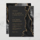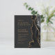 A borda direita deste elegante convite de casamento moderno apresenta uma moody black watercolor border com faux gold glitter. O texto personalizável combina fontes serif, copperplate e itálico de cor dourada em um fundo preto de ardósia. O verso apresenta um design de agate preto e dourado correspondente.