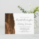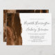 A borda esquerda deste elegante convite de casamento moderno apresenta uma mocha castanha de aquarela agata bordada com falsa brilho dourado. O texto personalizável combina a escrita manual de cinzas de carvão, as fontes em copperplate e itálico em um fundo branco. O verso apresenta um design de agata marrom e dourado correspondente.