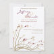 Cereja floresce em tons delicados de mauve, púrpura do crepúsculo, urze e creme flutuando serenamente na brisa neste belo convite de casamento contemporâneo, impresso em papel de ouro metálico.