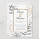Convide os entes queridos para o seu dia especial com este elegante convite para casamento tropical, com folhas de ouro e carvão ilustradas à mão num fundo branco limpo. O layout minimalista combinado com detalhes luxuosos define o tom para uma praia ou celebração de destino. Personalize facilmente com seus nomes, data e local os detalhes para um visual sofisticado e moderno.