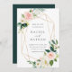Blush Bloom Wedding Invitation apresenta flores de aquarela pintadas em folhagem cor-de-rosa, branca e verde-esbranquiçada com quadro geométrico dourado. Para personalização mais avançada deste design, clique no botão "Personalizar". Itens correspondentes também estão disponíveis.