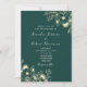 Elegante, rústico, vintage, convite de casamento verde esmeralda com rendas florais douradas, simples roteiro de caligrafia e monograma de volta.