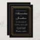 Casamento Geométrico Simples Moderno, Preto e Branco, com Cartão de Convite de Quadros Dourado - Preto