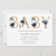 Convite para chá de fraldas com elementos florais de ouro, pincel e marinho