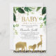 Dourados Safari Animal Foliage Chá de fraldas Convite para chá de fraldas de safari moderno, com três falsos animais de safari dourado, algumas ousadas folhas verdes e douradas e um padrão de pele-leopardo. Um design elegante para um safari neutro do gênero ou chá de fraldas temático de animais da selva.