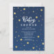 Convite para chá de fraldas estelar com um campo de estrelas douradas para um chá de fraldas neutro.