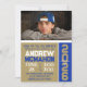 Convites de Foto para Graduação Vertical Moderna Dourada de Blue & Bronze 1 Foto - Repetição Ano de Classe