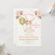 Dourado coelhinho rosa-rosa Floral Convite para o primeiro aniversario Coelhinho Bonito e Balão de Ouro Falso, primeiro convite de aniversário para uma menina. Este design também apresenta vários arranjos florais e alguns pontos falsos de ouro. Esta é uma design doce para as suas meninas, bem na primeira festa de aniversário.