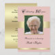 Este convite de aniversário elegante apresenta um adorável pano de fundo rosa de ouro junto com encantadores sotaques dourados. Sua celebrante de aniversário é o ponto focal da design com sua foto no centro bordado em ouro. O verso apresenta um fundo de ouro para todos os detalhes do seu convite. Direitos autorais