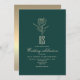 Simples, moderno, elegante, formal, romântico, convite de casamento de esmeralda verde e ouro, com monograma no topo.