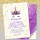 Convite Dourado Roxo para o Bebê do Unicorn