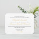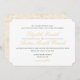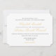 A escrita tradicional é emparelhada com um eterno, uma letra simples, na etiqueta da cerimônia da igreja. Este design apresenta um texto preto e um script dourado mate, um padrão de rendas brancas no verso do convite e um sutil fundo dourado de formato sutil. Sofisticado, clássico, eterno e simples - perfeito para um casamento elegante ou de gravata negra.