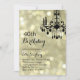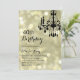 Um candelabro extravagante em um contexto do ouro ilumina acentos este convite do aniversário.