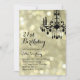 Um candelabro extravagante em um contexto do ouro ilumina acentos este convite do aniversário.
