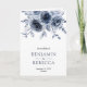 Convite Dusty Blue Floral Photo Collage QR Code Wedding