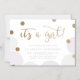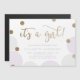 É uma garota! | Convites magnéticos para o Chá de fraldas de Confetti, roxos e Dourados, com modelos fáceis de personalizar por Designs Eugene. Este design bonito apresenta uma letra falsa de caligrafia dourada com uma tipografia simples e moderna em cinzas e roxo lavanda sobre fundo branco.