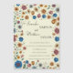 A peça central do design apresenta um script cuidadosamente trabalhado em vários estilos de fonte, exibindo elegantemente os nomes da noiva e do noivo. Este espaço personalizável permite adicionar texto adicional, como a data do casamento, local, endereço e outros detalhes pertinentes que guiarão seus convidados para a celebração alegre. Embora o espaço seja limitado, ele oferece uma oportunidade única de transmitir sua mensagem pessoal de forma concisa, mas impactante. Cada flor foi meticulosamente pressionada para preservar suas vibrantes matizes de azul, rosa, laranja, creme, amarelo e um toque de roxo acinzentado, criando uma paleta cativa que exumenta elegância e charme moderno. Contra um fundo bege eterno, o padrão floral evoca um senso de romance e beleza natural, definindo o tom perfeito para seu dia especial. Nosso modelo de convite para o casamento é versátil, atendendo a uma variedade de temas, incluindo casamentos de vintage, rustic e vintage. As delicadas flores silvestres simbolizam a beleza da natureza e o amor florescente entre duas almas. As flores multicoloridas acrescentam um toque vibrante, infundindo o design com um senso de alegria e celebração. Feito com atenção aos detalhes, nosso design de convite não só cativa o olho, como também reflete a essência do seu dia especial. A combinação de elegância e simplicidade cria um apelo eterno que será apreciado nos próximos anos. Cada convite é cuidadosamente impresso em papel de alta qualidade, garantindo uma apresentação luxuosa e refinada. Capture o encanto de um verão / casamento outono com esta obra-prima floral. Os detalhes intrincados e as delicadas flores silvestres evocam um senso de romance e evocam a beleza da natureza. É um convite que dá palco a um dia cheio de amor, alegria e memórias queridas.