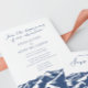 Para casais se casarem nas montanhas, este convite de casamento azul é uma escolha elegante. Katharine Woodman-Maynard desenhou este design de recorte de madeira para o casamento de sua amiga no Colorado, mas ele pode ser usado para qualquer casamento nas montanhas. Consulte a coleção de cheios de placas RSVP, números de tabela, Cartões salve a data, saco de tote e muito mais.