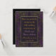 Nova série de papéis de carta do designer para todas as suas necessidades de convite e anúncio. Este convite elegante é feito em cores escuras, roxo, preto e ouro, com abstrato floral design e uma área central em preto para o seu texto. Personalize alterando o texto para qualquer coisa que você precise, na frente e no verso. Muito formal e elegante.