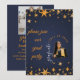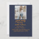 Celebre a grande conquista do seu graduado com este convite de formatura elegante em azul e dourado com estrelas. Com uma foto personalizável do graduado emoldurada por estrelas douradas cintilantes, este design combina sofisticação com charme festivo. Personalize o verso com os detalhes do evento - nome, data, local e RSVP - para criar um item de recordação que os convidados irão guardar. Perfeito para formaturas do ensino médio, faculdade ou qualquer marco de graduação, este convite define o tom para uma noite de alegria e conquista.