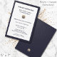 Elevem sua grande celebração de abertura com nosso Elegante Convite de Abertura. Apresentando um design clássico com fonte azul marinho, um logotipo de selo de ouro escovado personalizável e um enquadramento de impressão com textura azul de marinho rico, este convite define o tom perfeito para o grande dia de sua empresa. Simplesmente personalize com o nome da sua empresa, os detalhes do evento e as informações de RSVP para criar um convite memorável e sofisticado. Faça uma impressão duradoura com este design eterno.