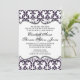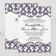 Este convite feito sob encomenda do casamento é perfeito para seu casamento clássico, elegante. Um fundo intrincado do damasco caracteriza um teste padrão subtil do coração. Disponível em toda a cor feita sob encomenda, apenas contacte-nos para a personalização do produto, sem qualquer custo adicional. Não esqueça personalizar a parte traseira com seu e o dela iniciais.