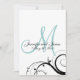 Design elegante do convite do casamento do monograma do redemoinho por Elke Clarke ©2010. Personalize com seus nomes do monograma e cores do casamento. Adicione toda sua informação do casamento na parte de trás do cartão usando alertas fáceis de usar do menu de Zazzle.