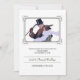 Convite de casamento temático dos anos 20 lindos no preto elegante, no branco e no cinza. A imagem romântica de um homem e de uma mulher do 1920 vestiu-se no finery elegante da era, dentro de um quadro do vintage. O cavalheiro está vestindo um chapéu alto e está levando um bastão. A senhora está vestindo um chapéu emplumado e um envoltório. Estão olhando adoringly em um outro. Este convite é facilmente customizável para que você adicione todos seus próprios detalhes. Os anos 20 cada rujir que wedding o convite vêm completo com um envelope branco.