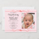 Um convite que elegante e bonito do batismo da foto você pode personalizar e mandar para sua celebração do evento do batismo. Todo o texto é ajustado usando a tipografia popular na cor preta. A cor de texto pode ser mudada usando a função de EDIT. A foto da amostra pode ser substituída. Um teste padrão floral complementa a parte traseira do cartão em um fundo cor-de-rosa macio.