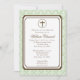 Um convite denominado elegante do batismo que caracteriza um esquema de cores marrom e branco em um fundo do damasco. É completamente customizável e pode ser usado para primeiros comunhões santamente e confirmações também.