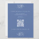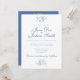 Um convite de casamento clássico com verde. A frente do cartão convida os convidados e indica a data e a hora. O verso do cartão direciona seus convidados para o site de casamento através de um código QR personalizável.